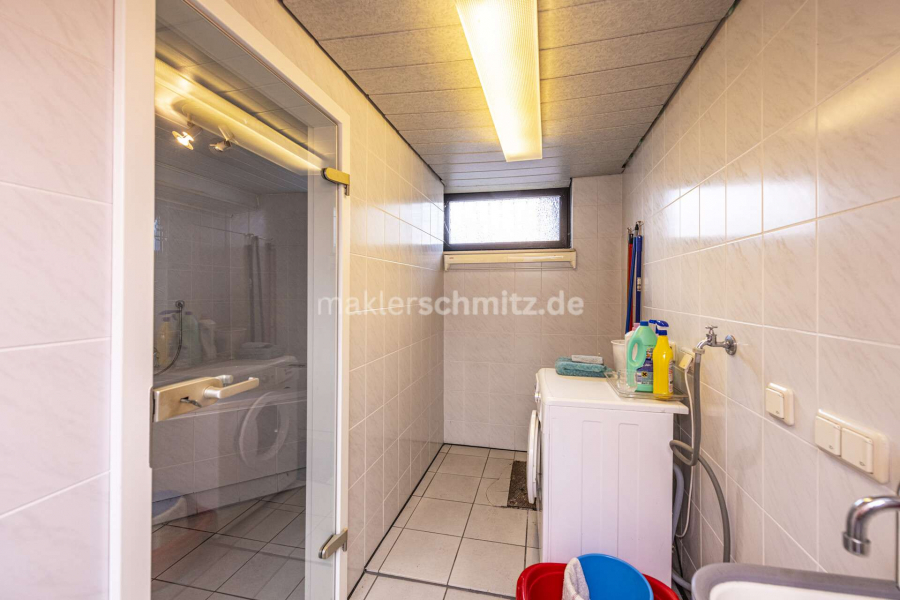 Das Haus ist voll unterkellert und bietet hier einen vielseitig nutzbaren Hobbyraum, eine Party-Kellerbar sowie einen Wellnessbereich mit Whirlpool, Sauna und Sonnenbank – perfekt für gesellige Abende oder erholsame Stunden zu Hause.