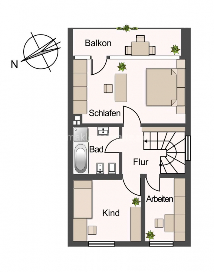 Das Haus umfasst zwei gemütliche Schlafzimmer, die Raum für Privatsphäre und Erholung bieten. Genießen Sie entspannte Stunden auf Ihrer eigenen Terrasse oder dem Balkon und lassen Sie den besonderen Charme dieser ruhigen Wohngegend auf sich wirken.