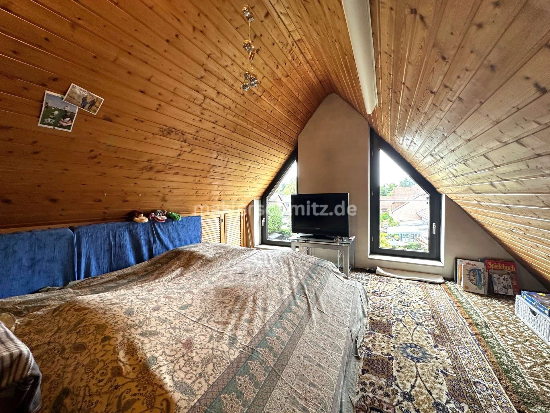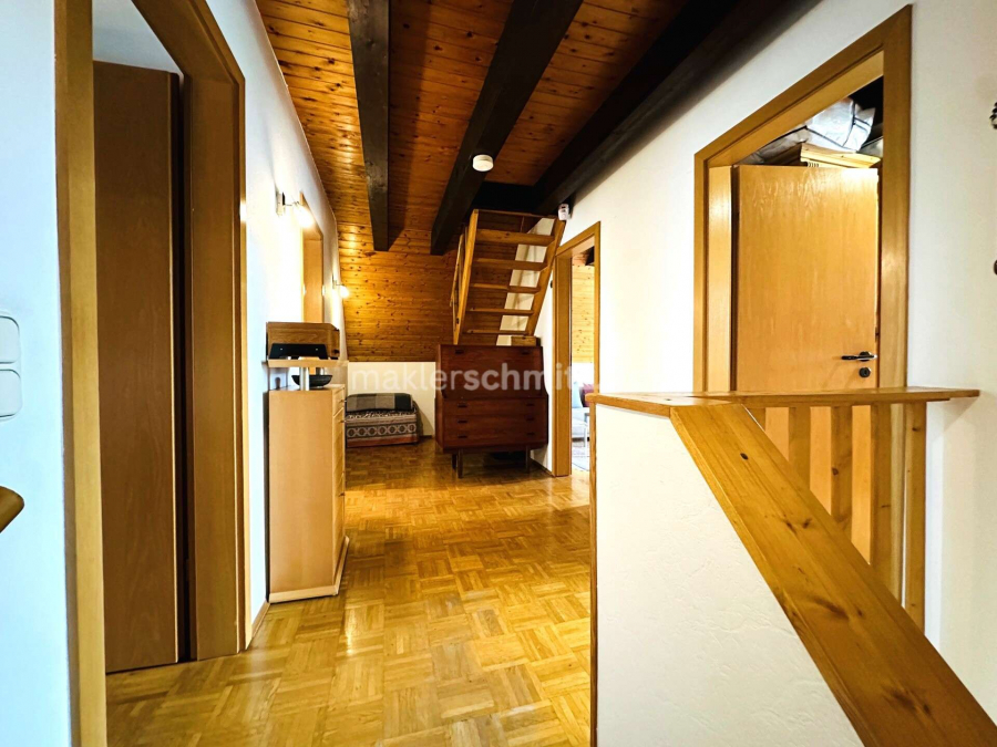 Im 1. Obergeschoss befinden sich ein Elternschlafzimmer, zwei weitere Zimmer, die sich ideal als Kinder-, Gäste- oder Arbeitszimmer nutzen lassen, sowie ein Badezimmer. Der ausgebaute Spitzboden erweitert die Fläche zusätzlich.