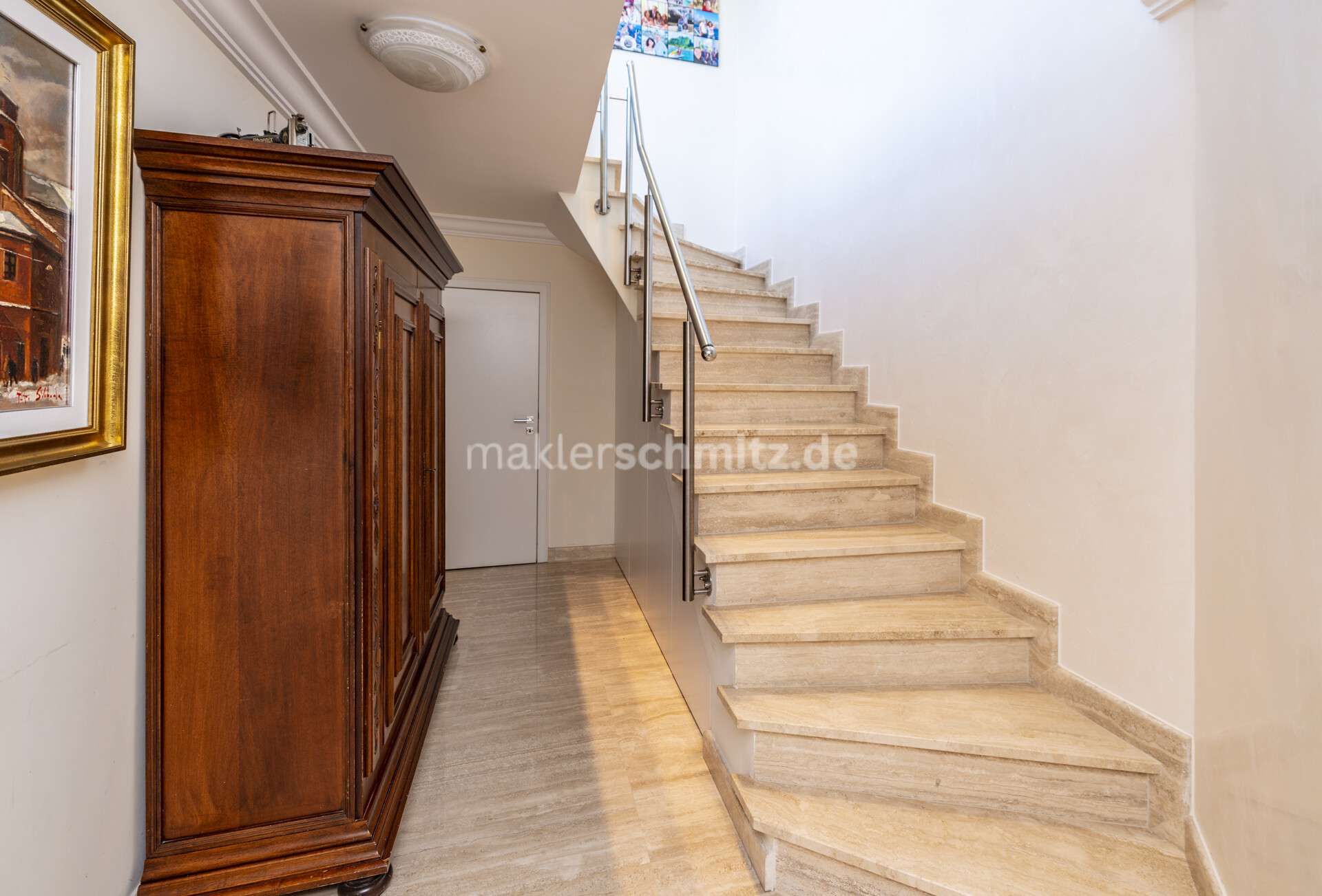 Das angebotene Haus zeichnet sich durch seine hochwertige Ausstattung und luxuriöse Details aus. Der gesamte Fußboden ist mit edlem Travertin ausgelegt, was dem Haus eine besondere Eleganz verleiht. Die Kunststofffenster sind mit Isolierverglasung ausgestattet und verfügen über elektrische Rollläden.