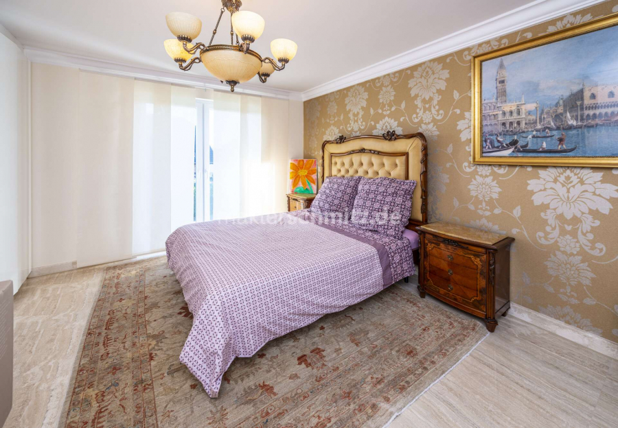 Der private Schlafbereich im Erdgeschoss besticht durch ein großzügiges Schlafzimmer mit separatem Ankleidebereich sowie ein luxuriöses Masterbad en Suite, das mit exklusiver Ausstattung und anspruchsvollem Design höchsten Komfort bietet.